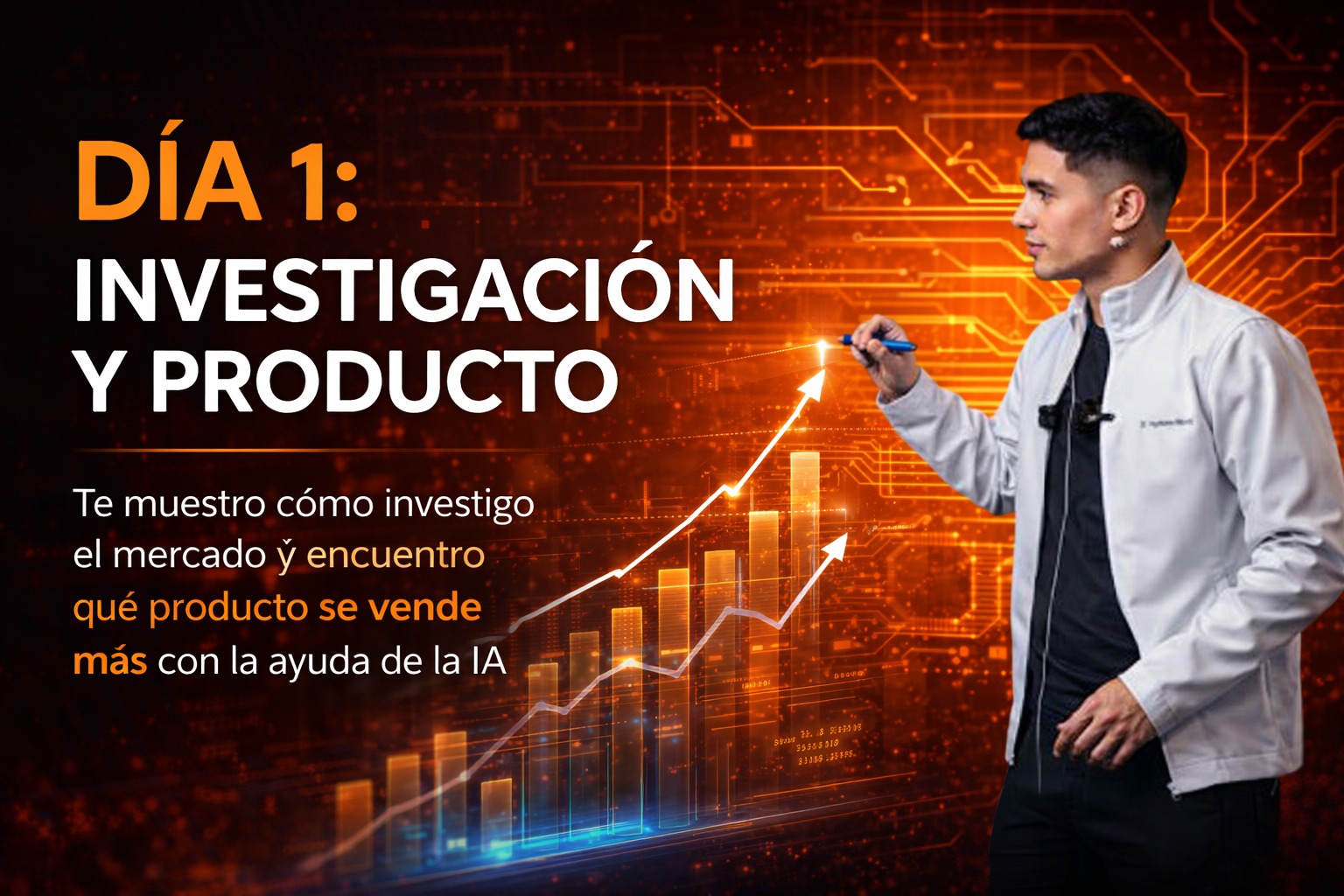 El primer día vamos a descubrir exactamente qué vender, a quién y cómo. Vamos a usar la IA para investigar el mercado, encontrar nichos rentables y crear tu producto digital desde cero... Todo guiado paso a paso.